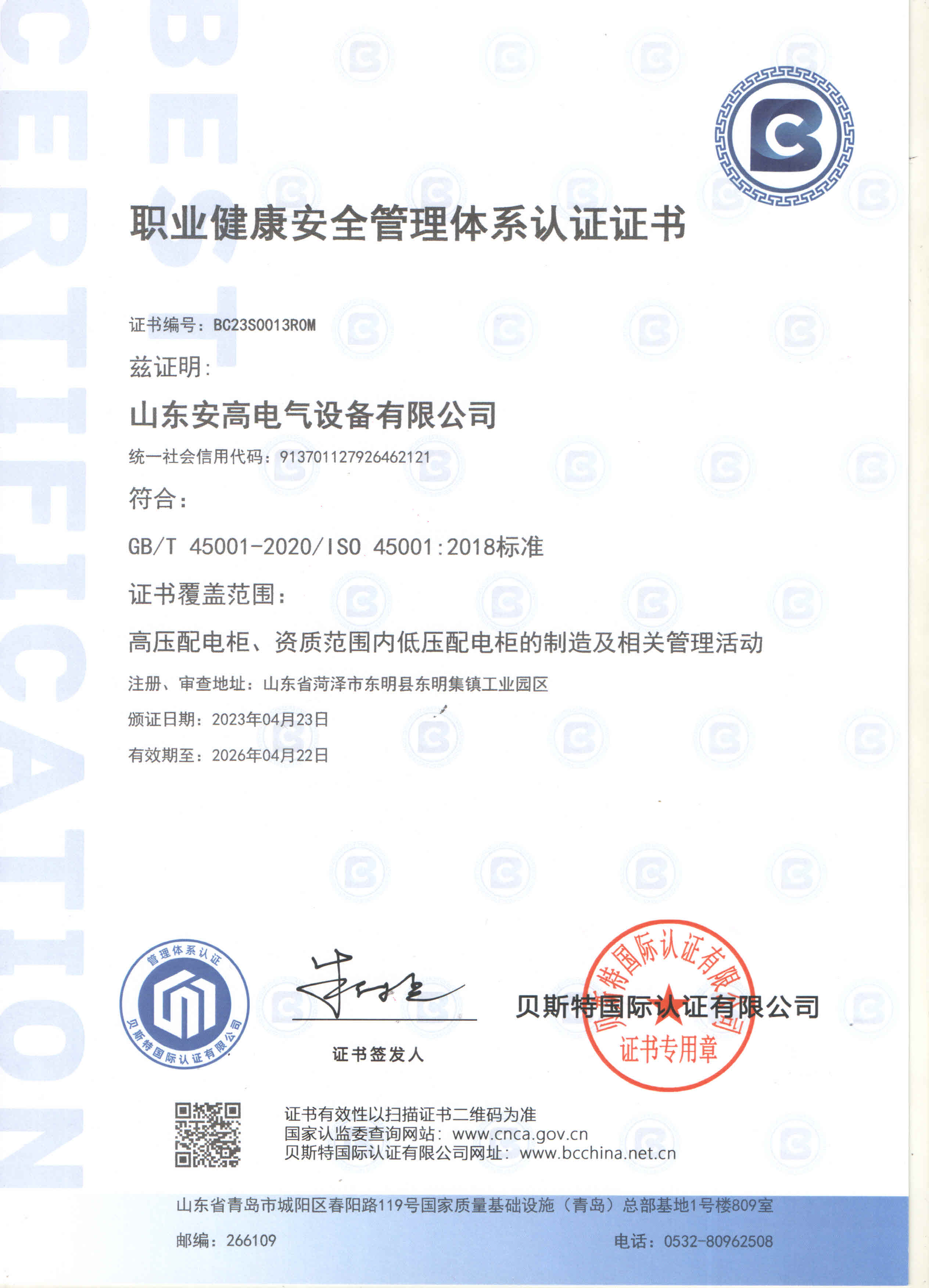 公司通過“IS09001質量管理體系認證”、“GB/T 14001環境管理體系認證”、“GB/T 45001職業健康安全管理體系認證”三大體系認證,榮獲國家級“高新技術企業”、國家級“科技型中小企業”、“山東省專精特新中小企業”、“企業技術中心”、“山東知名品牌”等榮譽稱號;并與國內外知名高校建立長期的戰略合作關系,加強技術研發與項目開發。